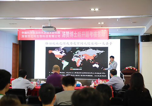 6月18日,中國科學院深圳先進技術(shù)研究院與深圳市北科生物科技有限公司聯(lián)合培養(yǎng)的博士后湯贊博士開題答辯會在北科生物舉行。西安交通大學生命科學學院教授丁健、廣東食品藥品職業(yè)學院副教授劉戈飛、中國科學院深圳