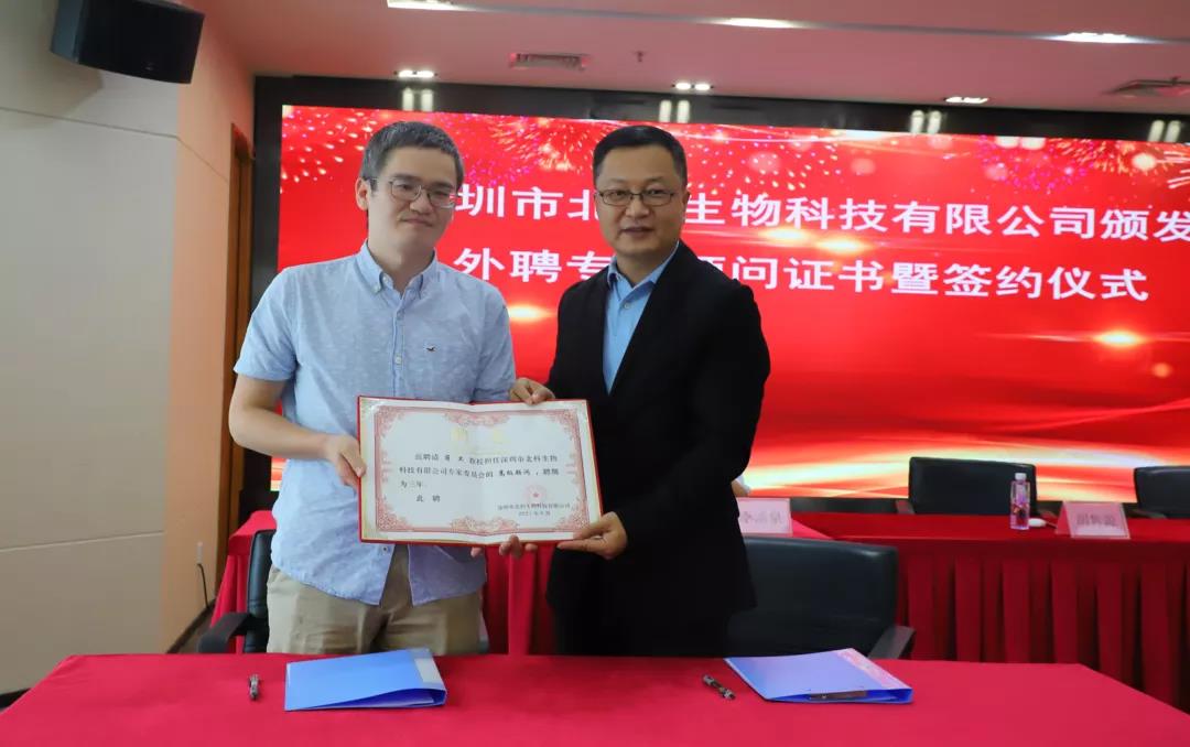 9月29日下午,為推動(dòng)公司實(shí)現(xiàn)高質(zhì)量的發(fā)展,提升公司的核心競(jìng)爭(zhēng)力,深圳市北科生物科技有限公司舉行了頒發(fā)外聘專(zhuān)家顧問(wèn)證書(shū)暨合作項(xiàng)目簽約儀式。北科生物董事長(zhǎng)胡雋源博士與蔣衛(wèi)教授簽訂《合作項(xiàng)目意向書(shū)》并頒發(fā)外聘專(zhuān)家顧問(wèn)證書(shū)。蔣衛(wèi)教授是武漢大學(xué)醫(yī)學(xué)研究院教授、中南醫(yī)院特聘研究員,在干細(xì)胞分化、表觀遺傳學(xué)調(diào)控、長(zhǎng)非編碼RNA等領(lǐng)域有著深入研究,已在國(guó)際刊物發(fā)表論文30多篇,被SCI引用2000余次。