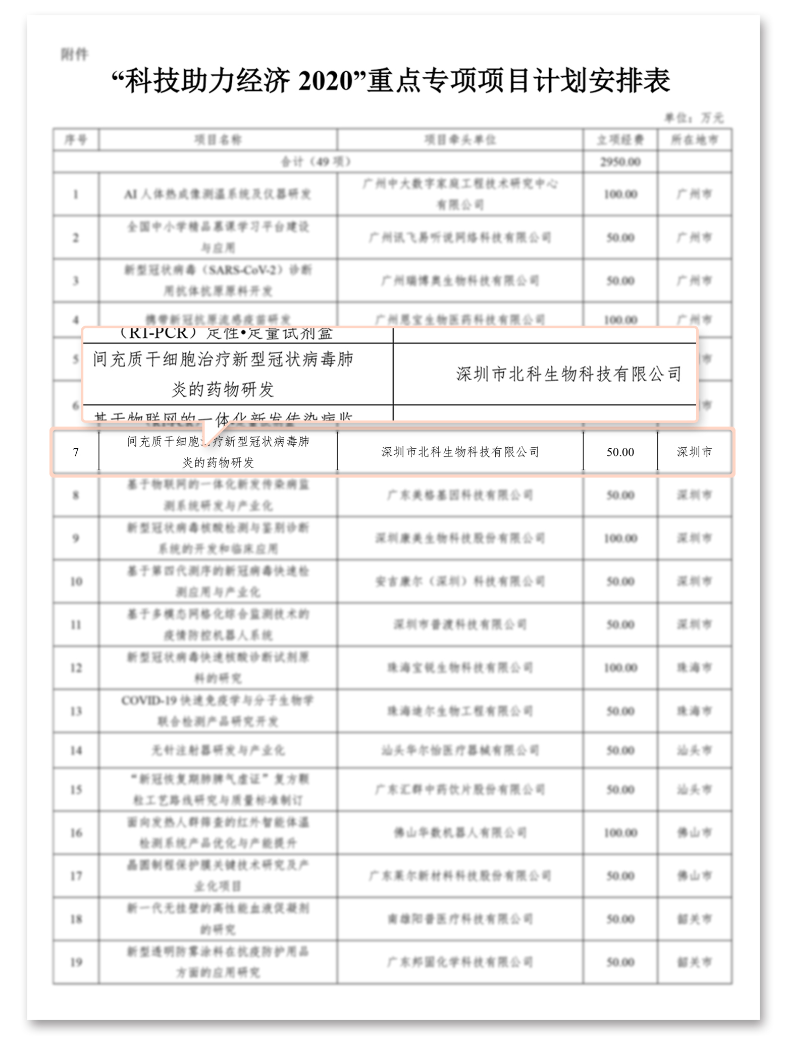 日前,由科技部支持的一批覆蓋國(guó)民經(jīng)濟(jì)主要行業(yè)的技術(shù)創(chuàng)新項(xiàng)目陸續(xù)“揭榜”,廣東省科技廳正式發(fā)布了《廣東省科技廳關(guān)于下達(dá)2020年“科技助力經(jīng)濟(jì)2020”重點(diǎn)專項(xiàng)項(xiàng)目計(jì)劃的通知》,其中深圳市北科生物科技有限公司(以下簡(jiǎn)稱“北科生物”)牽頭的《間充質(zhì)干細(xì)胞治療新型冠狀病毒肺炎的藥物研發(fā)》成功入選,獲“廣東省科技助力經(jīng)濟(jì)2020”重點(diǎn)專項(xiàng)推薦項(xiàng)目。