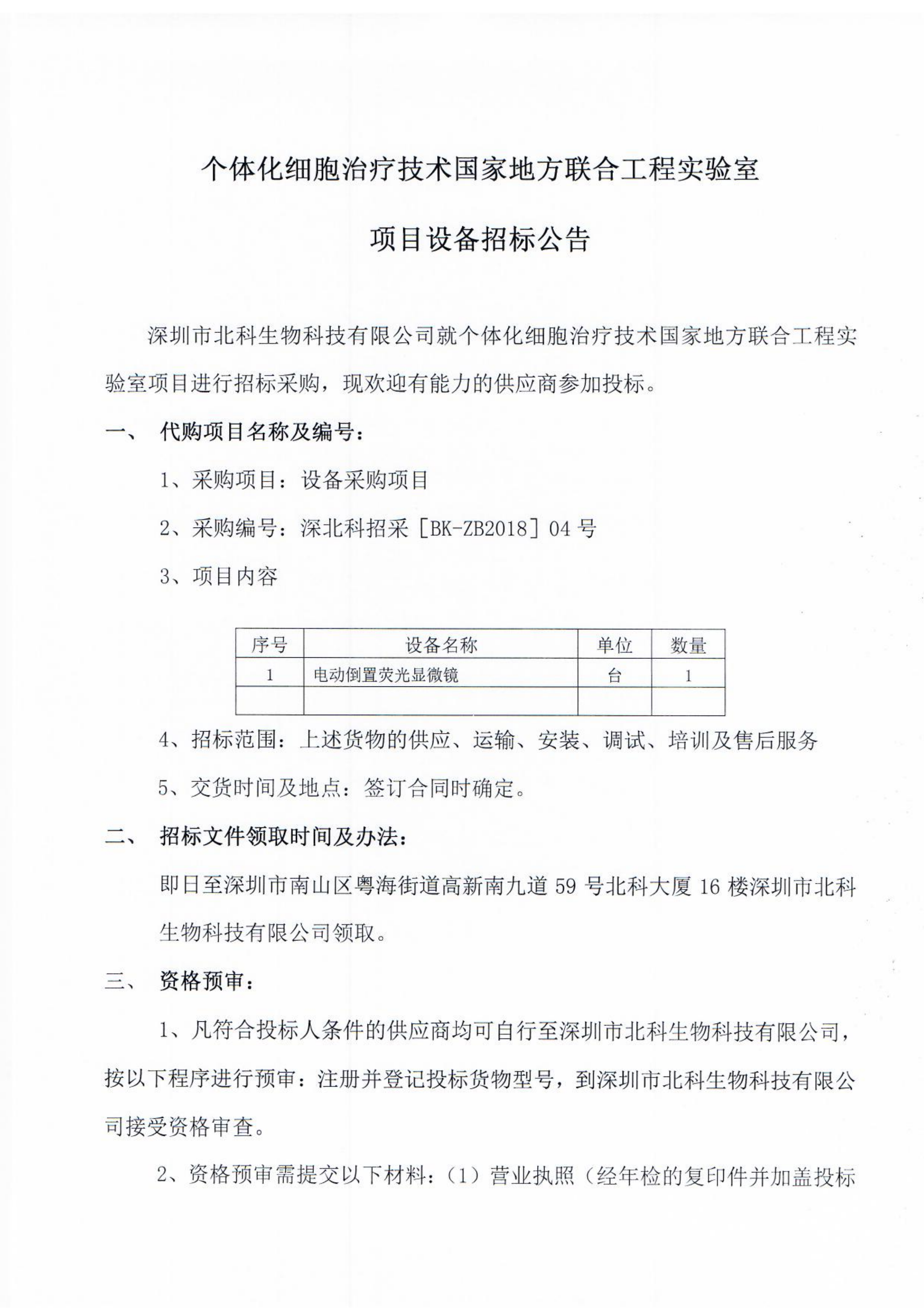 個(gè)體化細(xì)胞治療技術(shù)國(guó)家地方聯(lián)合工程實(shí)驗(yàn)室項(xiàng)目設(shè)備招標(biāo)公告