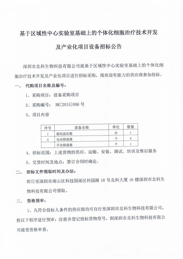 基于區(qū)域性中心實(shí)驗(yàn)室基礎(chǔ)上的個(gè)體化細(xì)胞治療技術(shù)開(kāi)發(fā)及產(chǎn)業(yè)化項(xiàng)目設(shè)備招標(biāo)公告