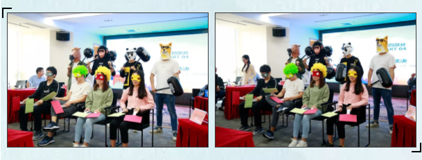 最后一個(gè)環(huán)節(jié),每組選出一名答題人做代表,蒙眼聽題快速判斷對(duì)錯(cuò),答錯(cuò)將受到狼牙棒懲罰。