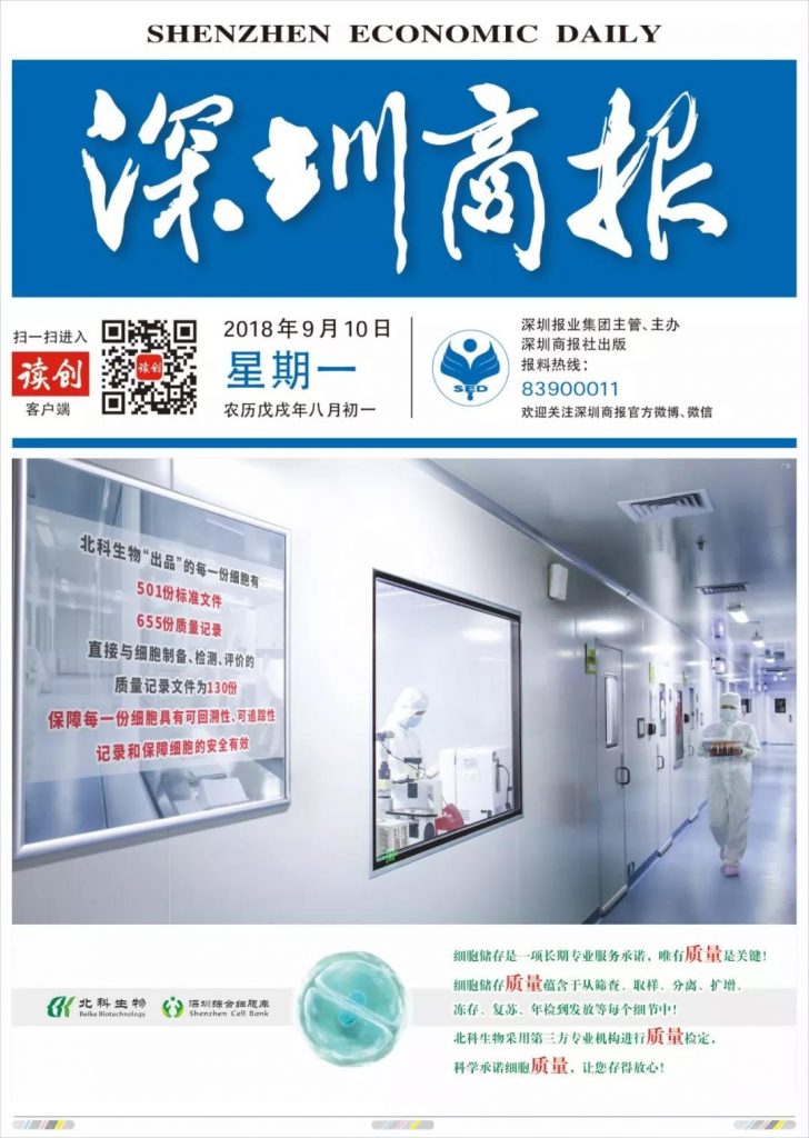【深圳商報】北科生物科學(xué)承諾細胞質(zhì)量,讓您存得放心!